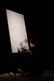 In 2024, I had the opportunity to live paint at the Jubilee Conference in Pittsburgh, PA, during each of the keynote main stage sessions. The theme of the conference follows the arc of creation, fall, redemption, and restoration, and these four panels reflect on that narrative in four movements. The greens and yellows indicate flourishing, an element that grows and progresses from panel the panel, and the black represents the presence and place of sin in our human story. The gold veins represent our relationship to God, one which begins in harmony at the beginning, and is fractured in the fall, but finds its way eventually to the redemption of all things in the end.